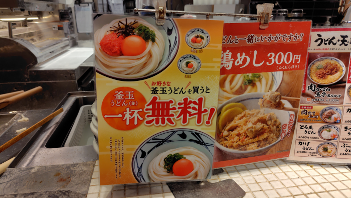 2月25日から丸亀製麵で釜玉うどん頼むともう一杯釜玉うどんをくれるキャンペーンしてるので食べに行ってみましたが、釜揚げうどん日じゃないのにちょっと混んでましたね。