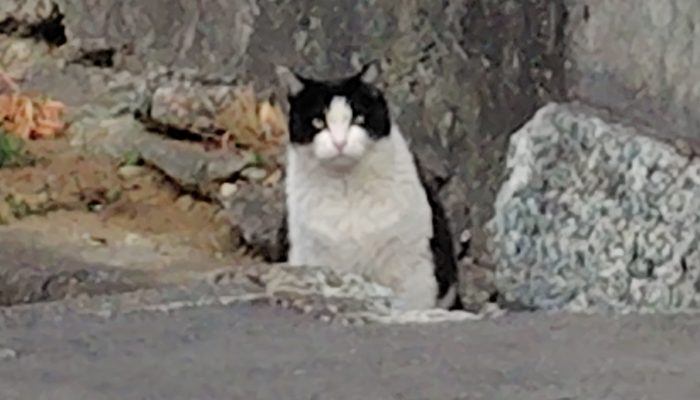 ハチワレちゃんが道の先でひょっこり覗いてて可愛かったけど、近くに寄ったらピャーっと逃げられました。ここにはハチワレちゃんが二匹いてゴロンゴロンしてにゃーにゃ―鳴くやつとすぐ逃げるやつで、こいつはすぐ逃げるやつですね。