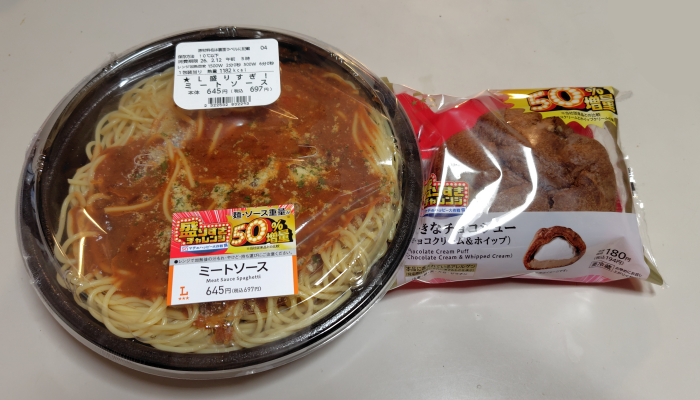 ローソンの盛りすぎチャレンジの第三弾開始だからローソン巡りをして入荷と品出ししたばっかりのミートソースと大きなチョコシューをゲットしてきました。