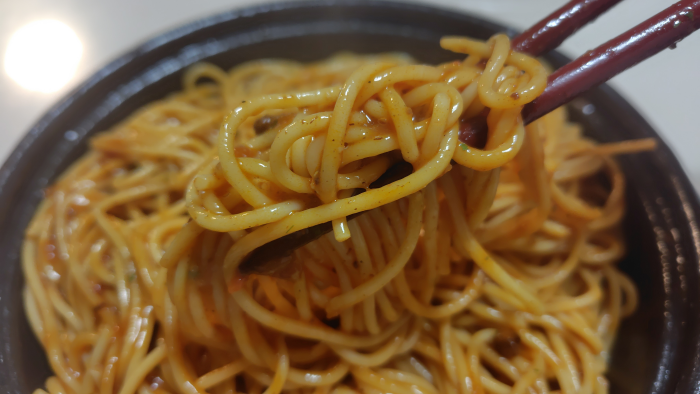 盛りすぎチャレンジのミートソースは麺だけ増量化と思ったけど、麺とソースなのでソース不足地獄は無いようですね。重量は900グラム超えの910グラムかな?