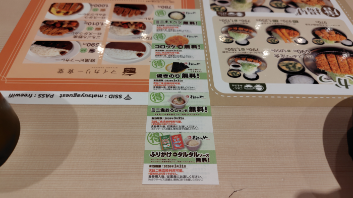 無料クーポンを貰ったけど3月末までのご利用なんですね。キャベツの千切りが貰えるようになってるのでありがたいですね。