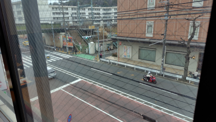 席は3階の車がびゅんびゅん走る道路と井土ヶ谷駅を通る電車を眺めながら食べられる席を確保できました。
