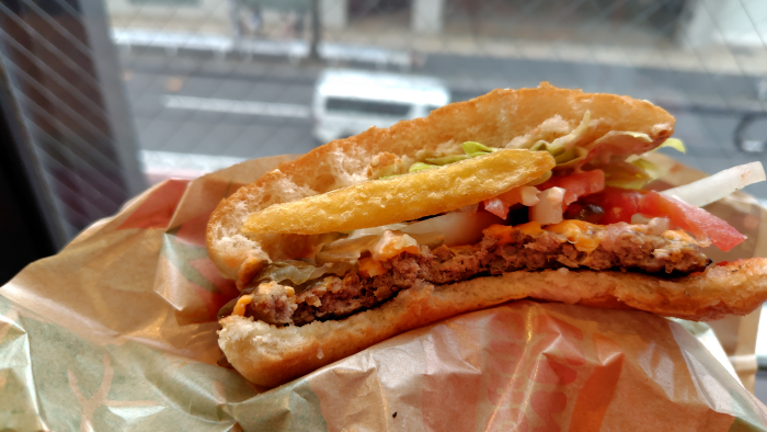 ワッパーチーズはもちろんオールヘビーで野菜マシマシになっています。レタスとか玉ねぎが増えているのかな?デカいパティとパンズに口の中の水分吸われそうですが、追加野菜のおかげでカラカラにならずに食べられるのがありがたいですね。