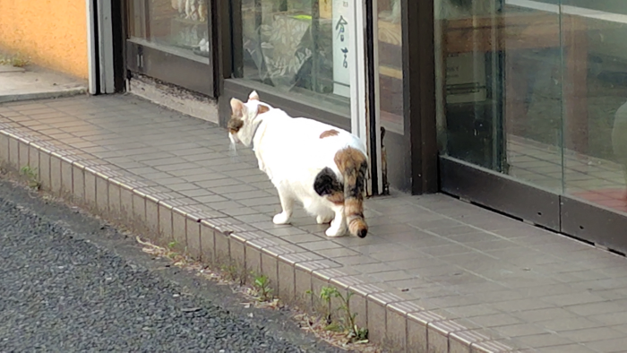 酒屋の猫ちゃんが珍しく外にいるので珍しいなと思ってみてたら、アレ?締め出された?って顔でキョトンとしてました。その後ビックリして自動扉が開かないかウロチョロした後にもう駄目だ!?って感じで走り出したら自動扉が開いたのでラッキーって感じで店内に戻っていて安心ですね。