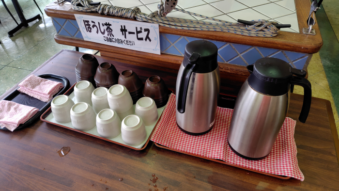 冷水もあったけど寒かったので暖かいほうじ茶があってありがたいですね。