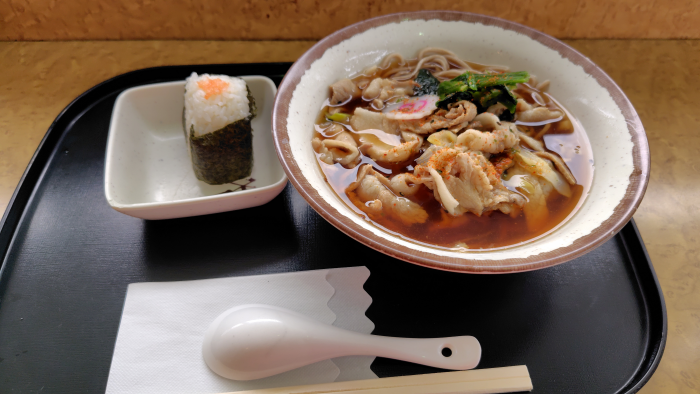 久里浜港のコーラルで豚蕎麦とおにぎり食べてみる