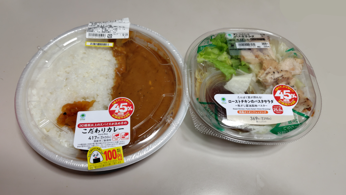 ファミリーマートの45%キャンペーンでカレーとチキンサラダ買ったよ
