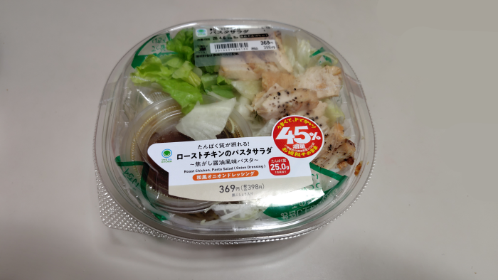 チキンサラダだと思ってたらパスタサラダだったんですね。全部サラダとチキンだけだと思ってたのでちょっぴり残念ですね。