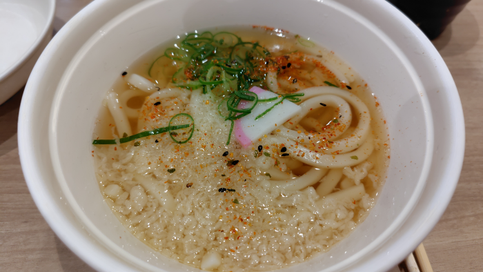 次に届いたのがうどんですね。今回は天かすは全部ふにゃふにゃでカリカリじゃないので寂しいですね。けどスープの出汁と程よい硬さのうどん麺は美味しかったですね。