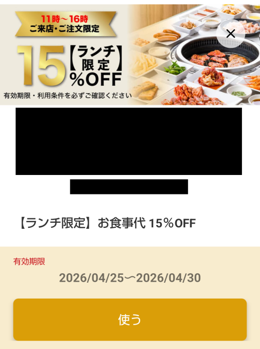 ランチタイム限定で使えるお食事代15%OFFクーポンを貰ったし4月末までしか使えないので使いに行くことにしました。会計時に16時過ぎてたら使えないとか、そんな罠はないよね?