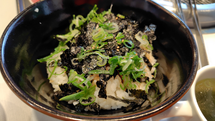カルビ用丼ですが、海苔とネギと胡麻があって通常のランチでは食べられないものなので特別感があっていいですね。