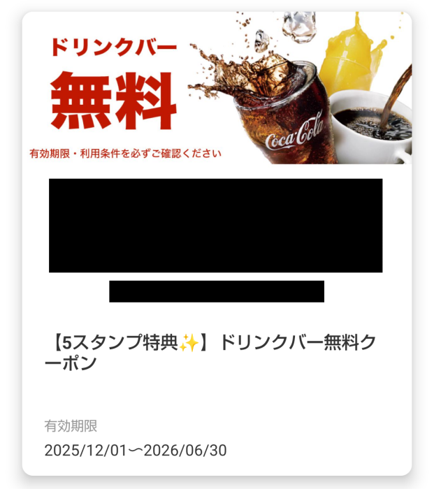 スタンプ貯めて貰ったドリンクバー無料クーポンも併用して使えるみたいなので、これも使って豪華なランチにしようかと思います。