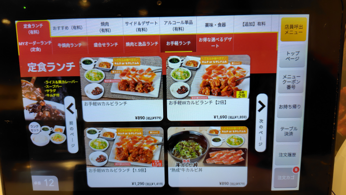 早速来店して定食ランチを頼んでいくよ!お手軽Wカルビランチか熟成牛カルビ丼か悩みますね。