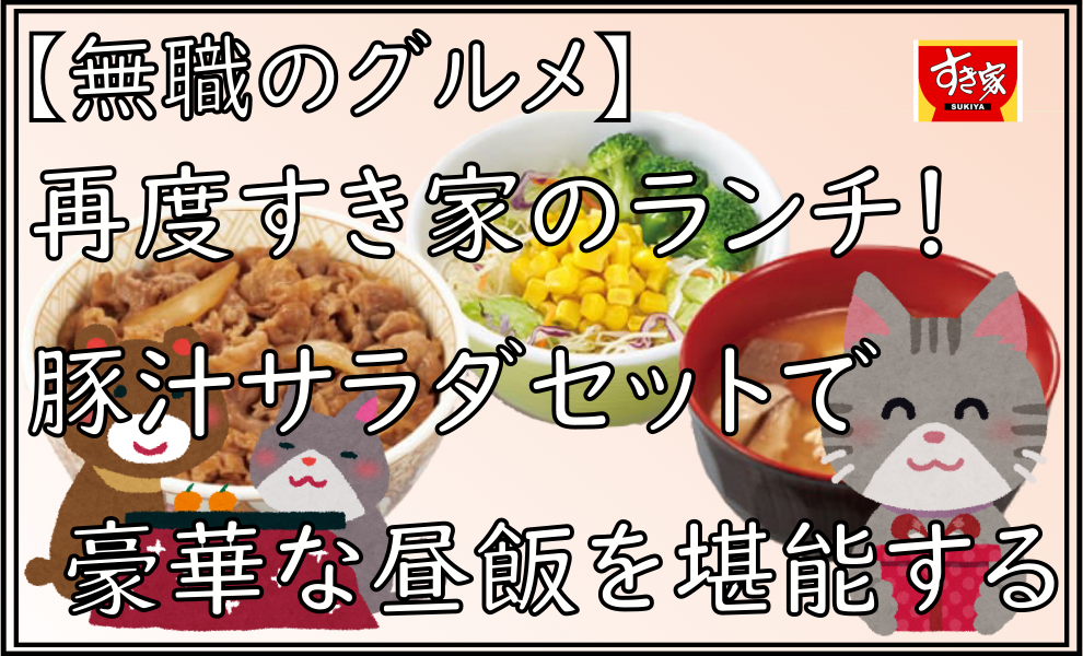 【無職のグルメ】再度すき家のランチ!豚汁サラダセットで豪華な昼飯を堪能する