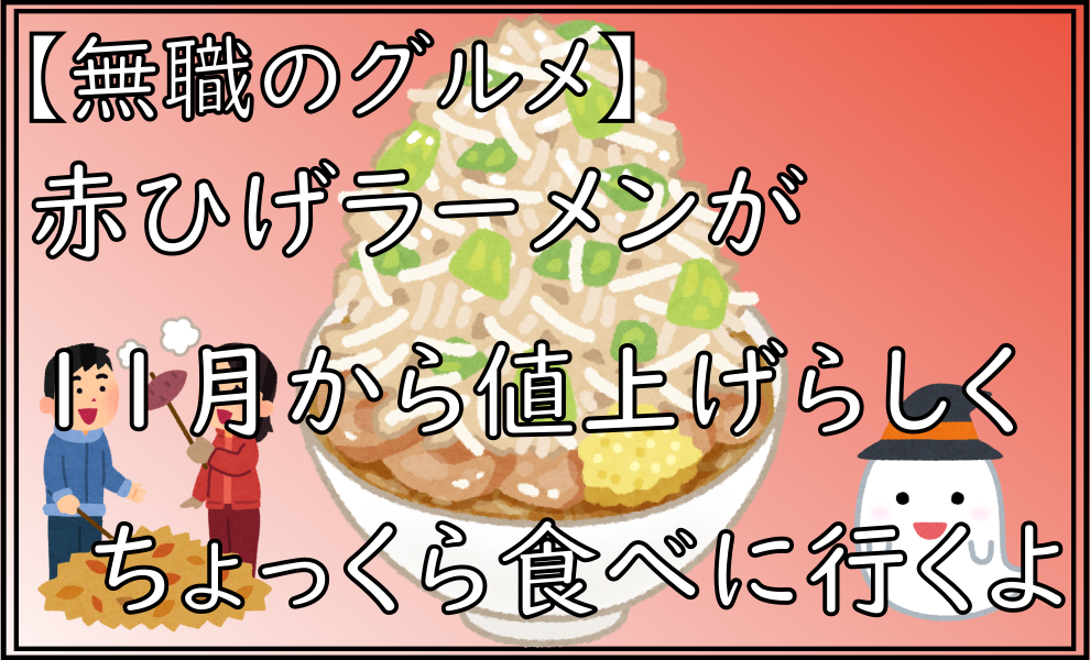 【無職のグルメ】赤ひげラーメンが11月から値上げらしくちょっくら食べに行くよ
