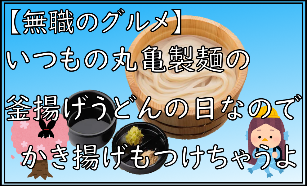 【無職のグルメ】いつもの丸亀製麵の釜揚げうどんの日なのでかき揚げも付けちゃうよ