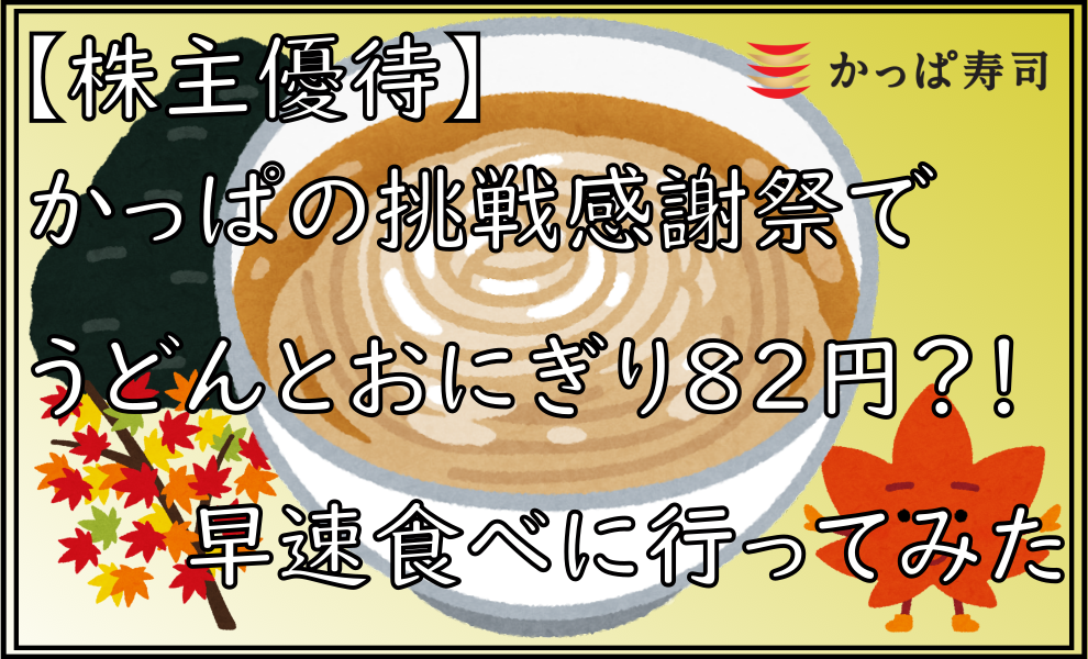【株主優待】かっぱの挑戦感謝祭でうどんとおにぎり82円?!早速食べに行ってみた