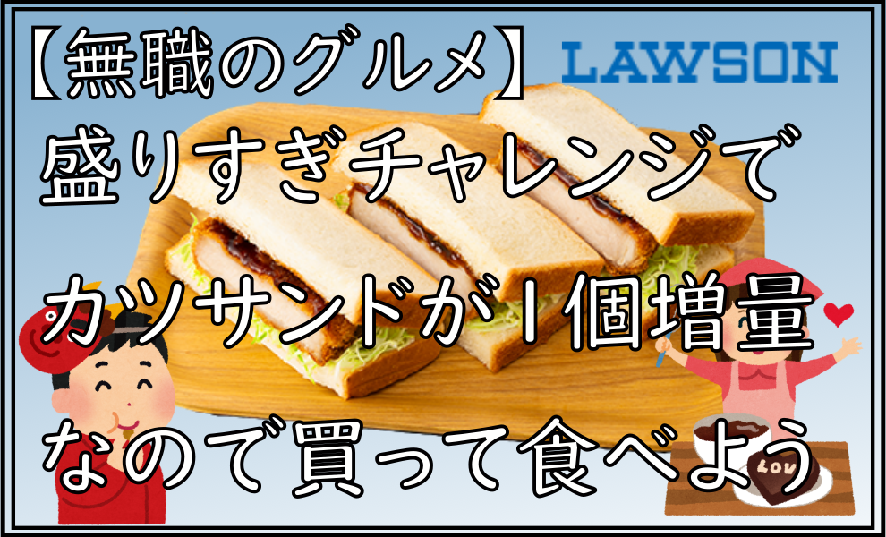 ローソンの盛りすぎチャレンジでカツサンド1個増量してるので買…