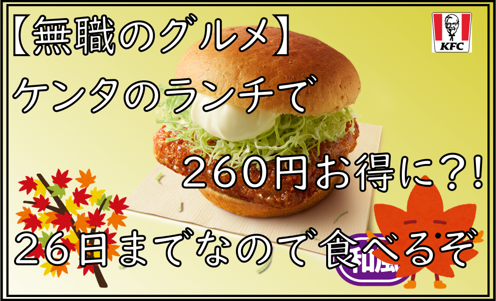 【無職のグルメ】ケンタのランチで260円お得に?!26日までなので食べるぞ