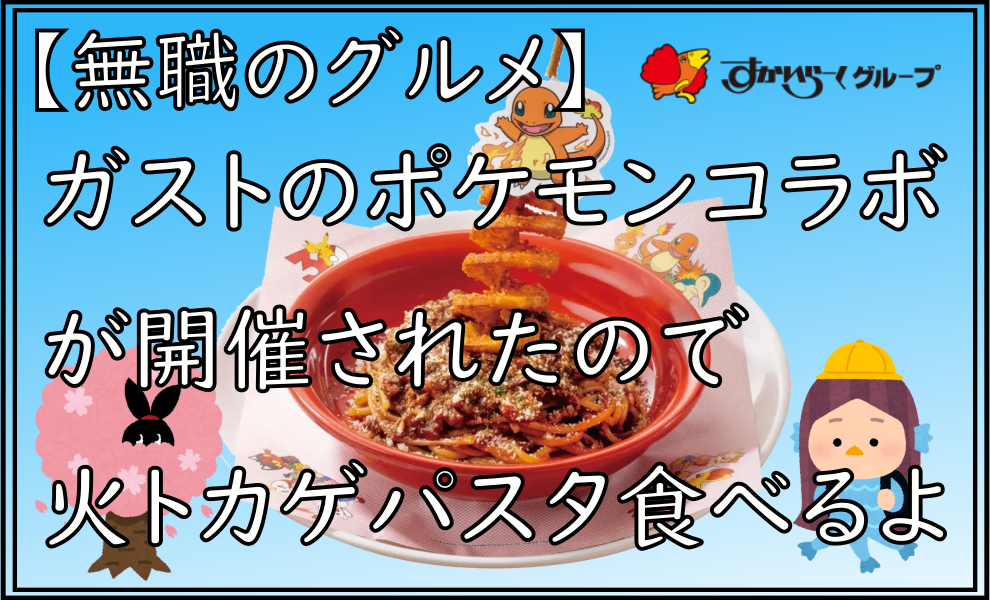 【無職のグルメ】ガストのポケモンコラボが開催されたので火トカゲパスタ食べるよ